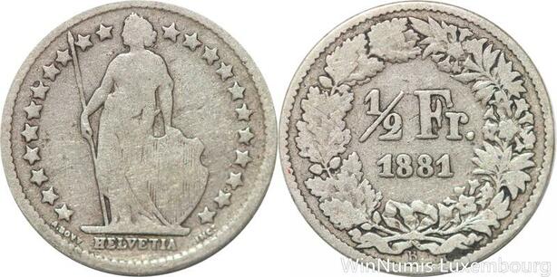 R7257 Switzerland 1/2 Franc Helvetia 1881 B Berne Silver -> Make offer
