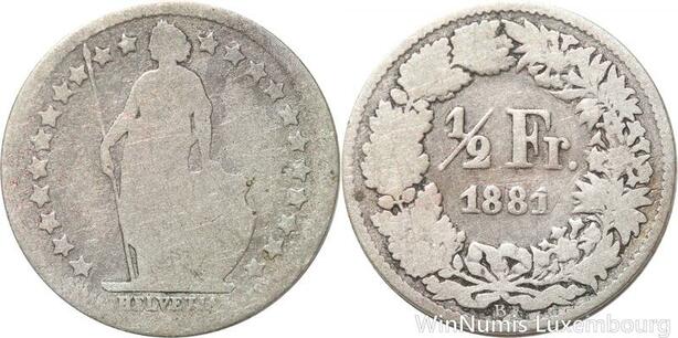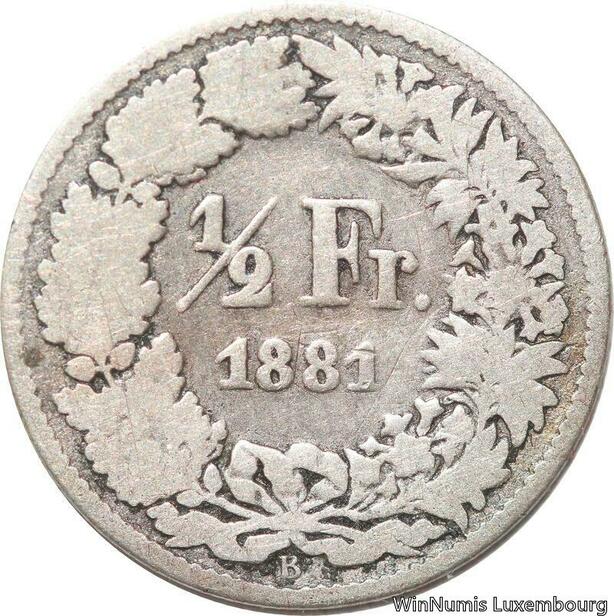 R7259 Switzerland 1/2 Franc Helvetia 1881 B Berne Silver -> Make offer