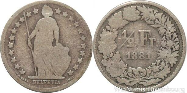 R7260 Switzerland 1/2 Franc Helvetia 1881 B Berne Silver -> Make offer