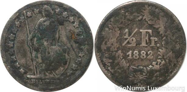 R7262 Switzerland 1/2 Franc Helvetia 1882 B Berne Silver -> Make offer