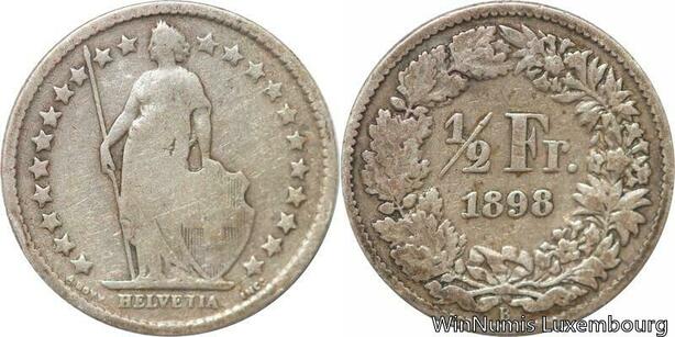 R7271 Switzerland 1/2 Franc Helvetia 1898 B Berne Silver -> Make offer
