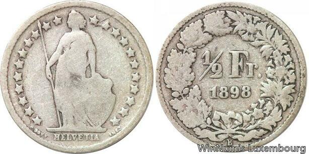 R7272 Switzerland 1/2 Franc Helvetia 1898 B Berne Silver -> Make offer
