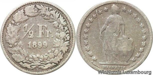 R7276 Switzerland 1/2 Franc Helvetia 1899 B Berne Silver -> Make offer