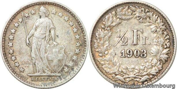 R7283 Switzerland 1/2 Franc Helvetia 1903 B Berne Silver -> Make offer