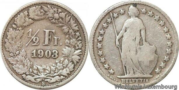 R7284 Switzerland 1/2 Franc Helvetia 1903 B Berne Silver -> Make offer