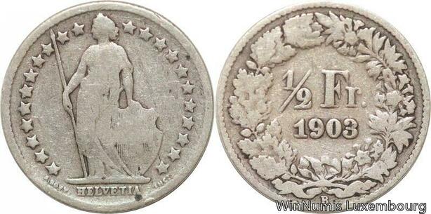 R7286 Switzerland 1/2 Franc Helvetia 1903 B Berne Silver -> Make offer