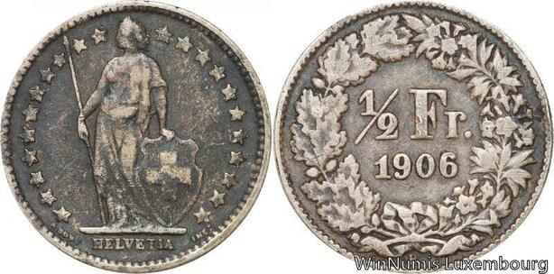 R7291 Switzerland 1/2 Franc Helvetia 1906 B Berne Silver -> Make offer
