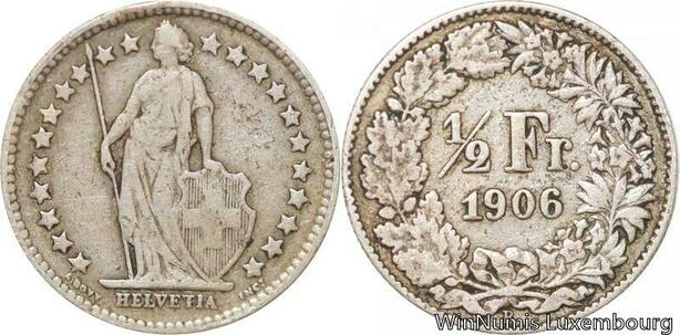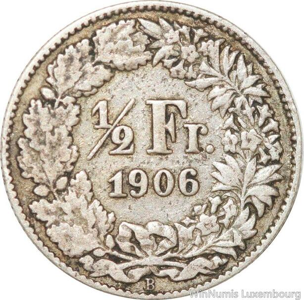 R7293 Switzerland 1/2 Franc Helvetia 1906 B Berne Silver -> Make offer