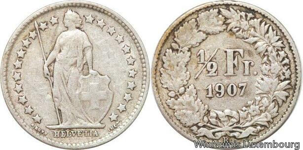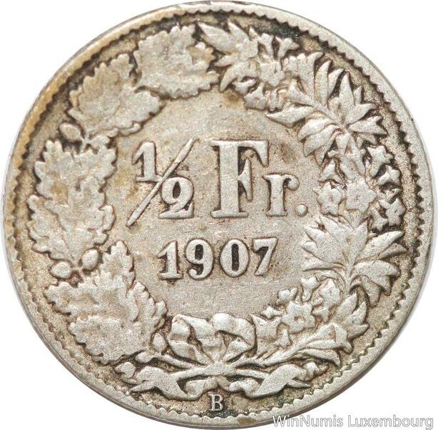 R7298 Switzerland 1/2 Franc Helvetia 1907 B Berne Silver -> Make offer