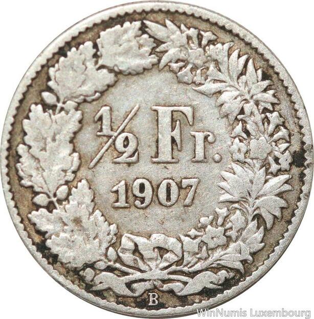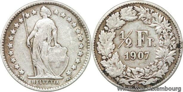R7300 Switzerland 1/2 Franc Helvetia 1907 B Berne Silver -> Make offer