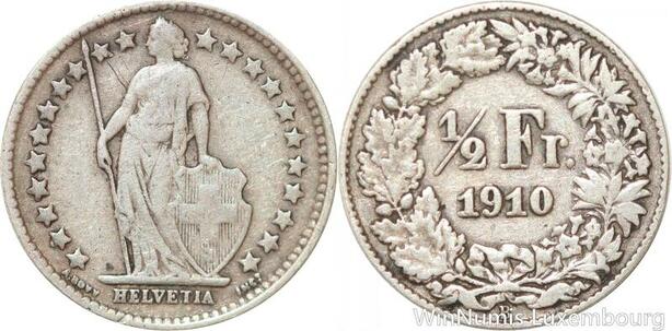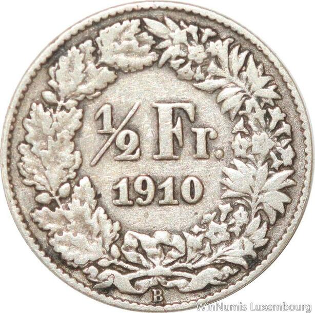 R7305 Switzerland 1/2 Franc Helvetia 1910 B Berne Silver -> Make offer