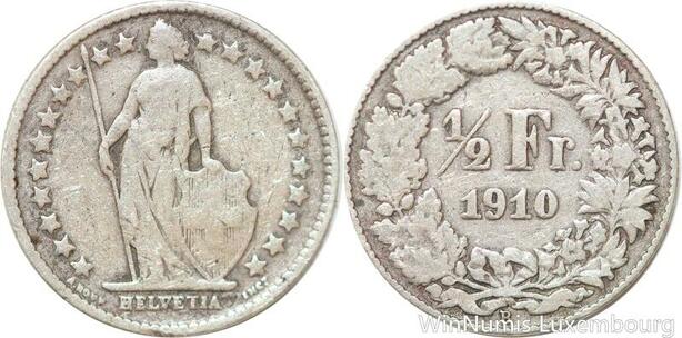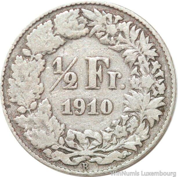 R7306 Switzerland 1/2 Franc Helvetia 1910 B Berne Silver -> Make offer