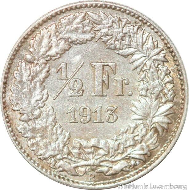 R7307 Switzerland 1/2 Franc Helvetia 1913 B Berne Silver -> Make offer AU