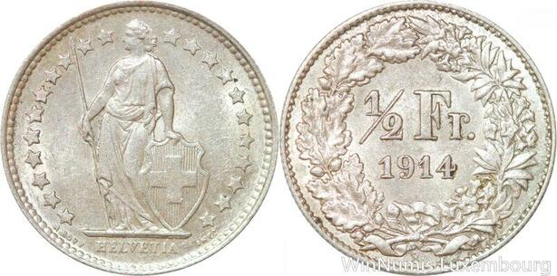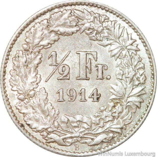 R7309 Switzerland 1/2 Franc Helvetia 1914 B Berne Silver -> Make offer AU