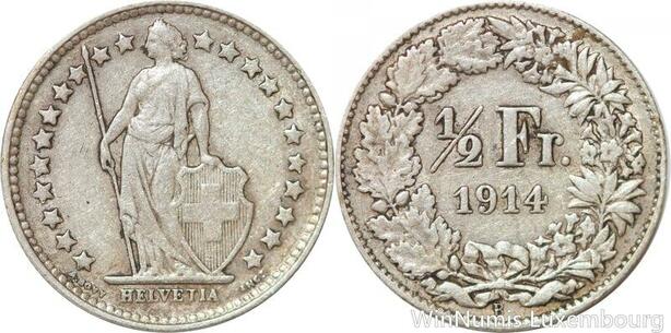 R7310 Switzerland 1/2 Franc Helvetia 1914 B Berne Silver -> Make offer