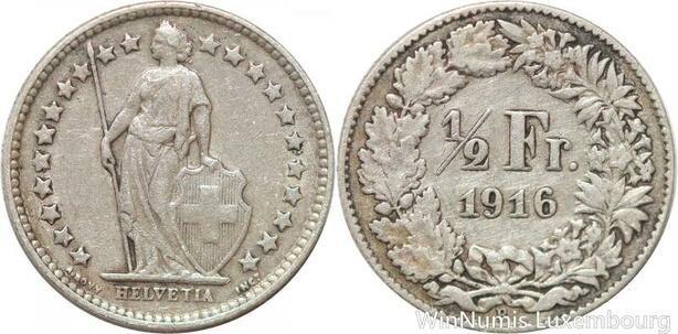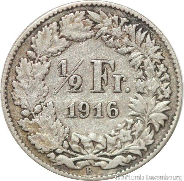 R7311 Switzerland 1/2 Franc Helvetia 1916 B Berne Silver -> Make offer