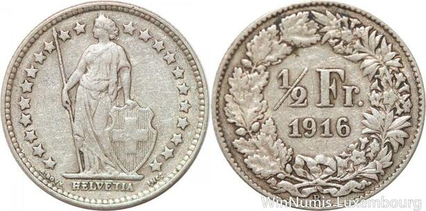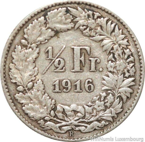 R7312 Switzerland 1/2 Franc Helvetia 1916 B Berne Silver -> Make offer