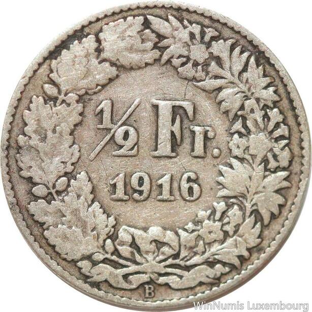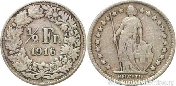 R7314 Switzerland 1/2 Franc Helvetia 1916 B Berne Silver -> Make offer
