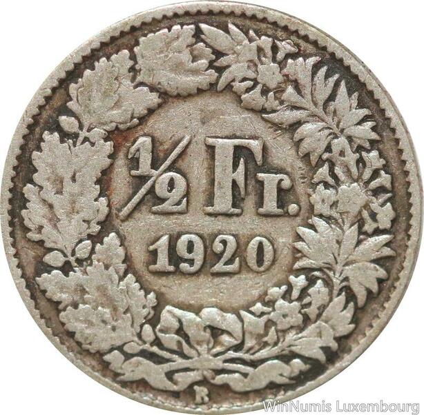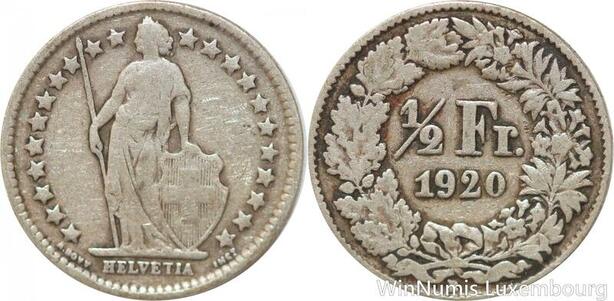 R7315 Switzerland 1/2 Franc Helvetia 1920 B Berne Silver -> Make offer