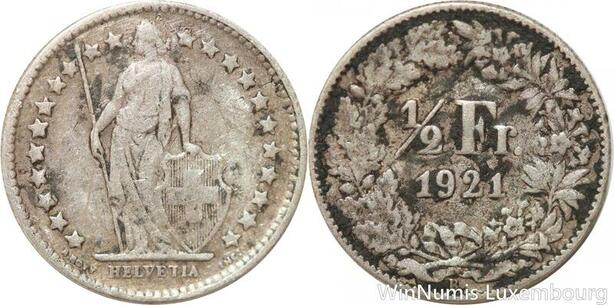 R7316 Switzerland 1/2 Franc Helvetia 1921 B Berne Silver -> Make offer