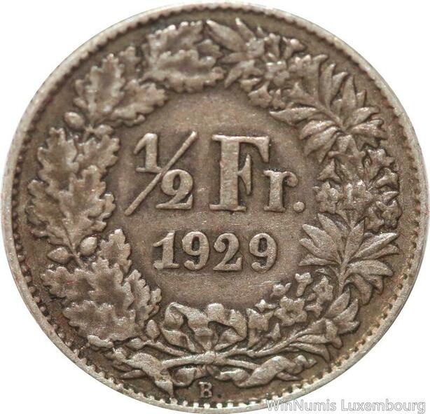 R7319 Switzerland 1/2 Franc Helvetia 1929 B Berne Silver -> Make offer