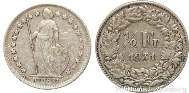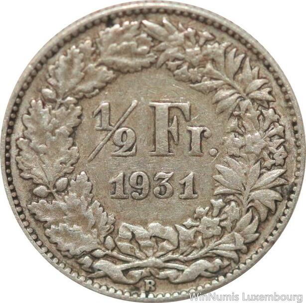 R7320 Switzerland 1/2 Franc Helvetia 1931 B Berne Silver -> Make offer