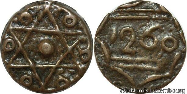 R7339 Morocco 1 Falus Moulay Abd al-Rahman Salomon AH 1260 1844 Variety Rosace