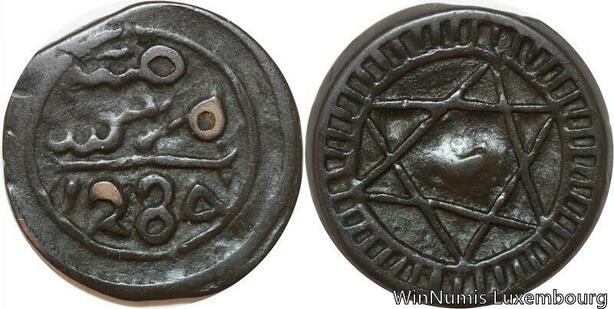 R7364 Morocco 4 Falus Sidi Mohammed IV Salomon AH 1285 1869 Marrakesh varieté 5