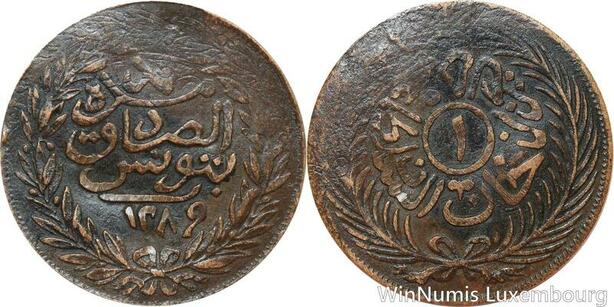 R7411 Tunisia 1 Kharub Sultan Abdul Aziz AH 1289 1872 -> Make offer
