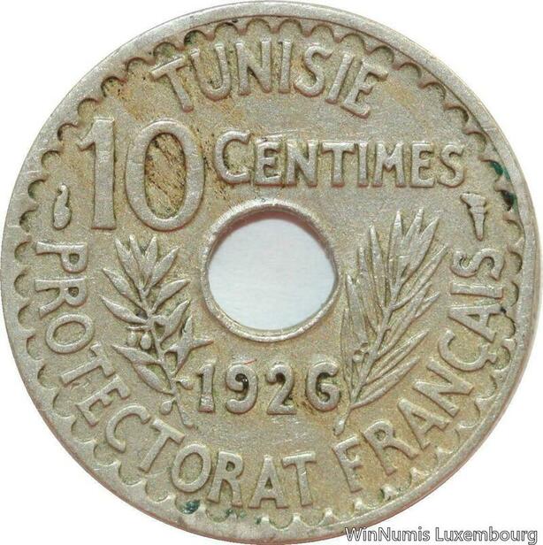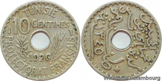 R7415 Tunisia 10 Centimes Muhammad al-Habib Bey AH 1345 1926 Paris Décentrée