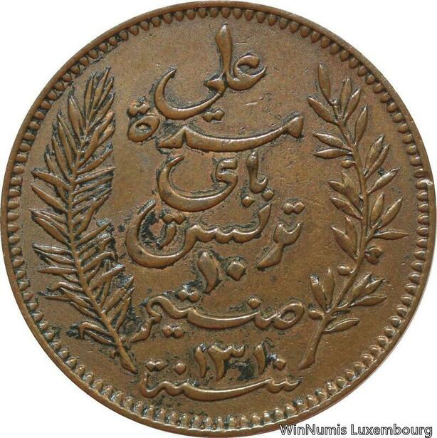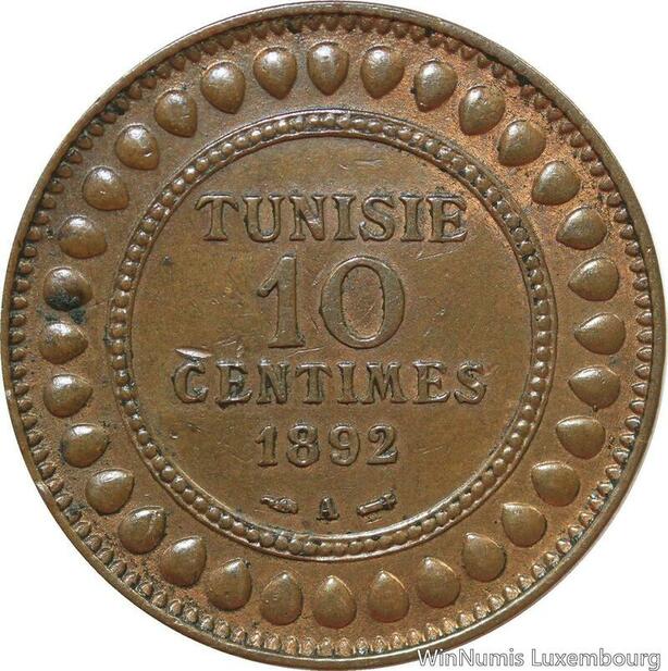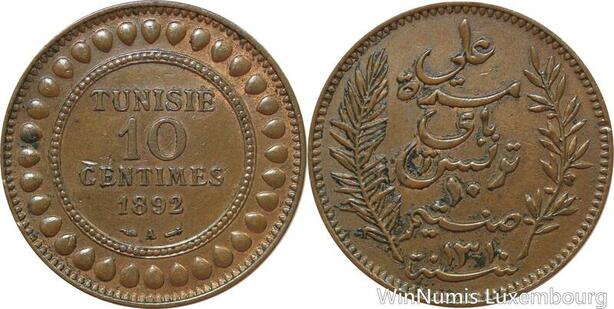 R7422 Rare Tunisia 10 Centimes Ali Bey AH 1310 1892 A Paris AU -> Make offer