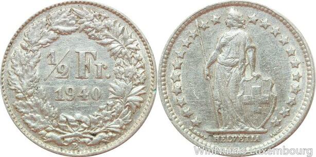R7432 Switzerland 1/2 Franc Helvetia 1940 B Berne Silver -> Make offer