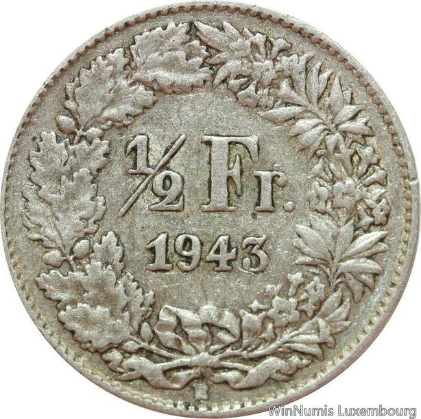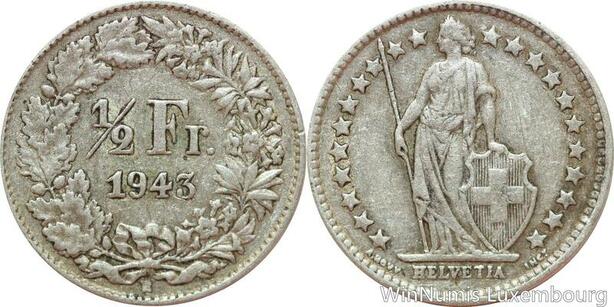 R7435 Switzerland 1/2 Franc Helvetia 1943 B Berne Silver -> Make offer