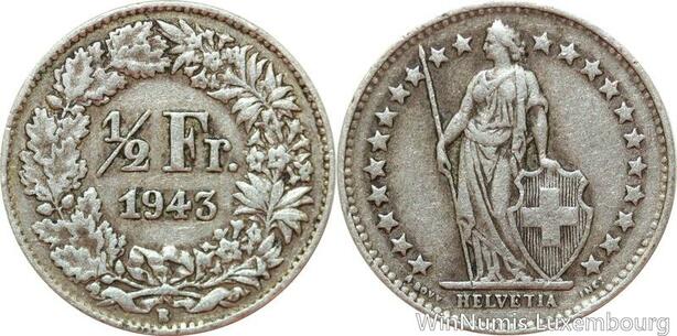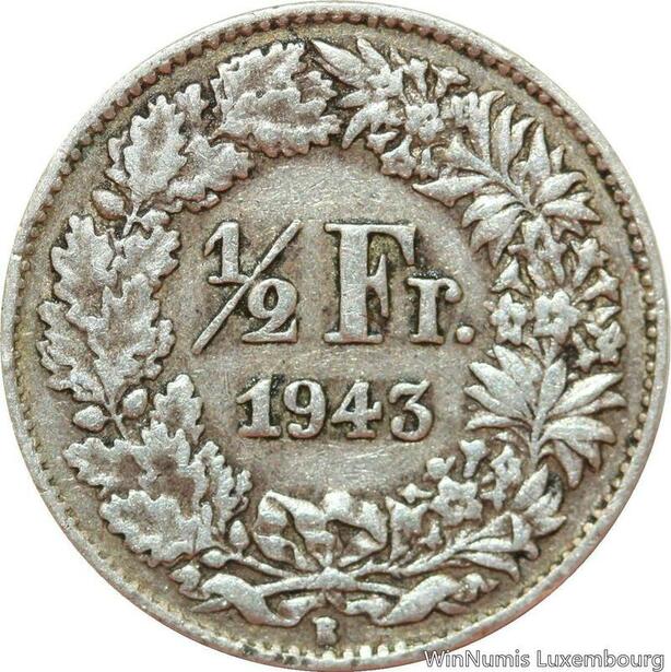 R7437 Switzerland 1/2 Franc Helvetia 1943 B Berne Silver -> Make offer