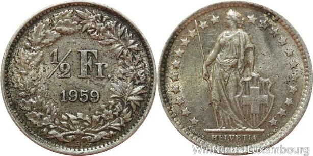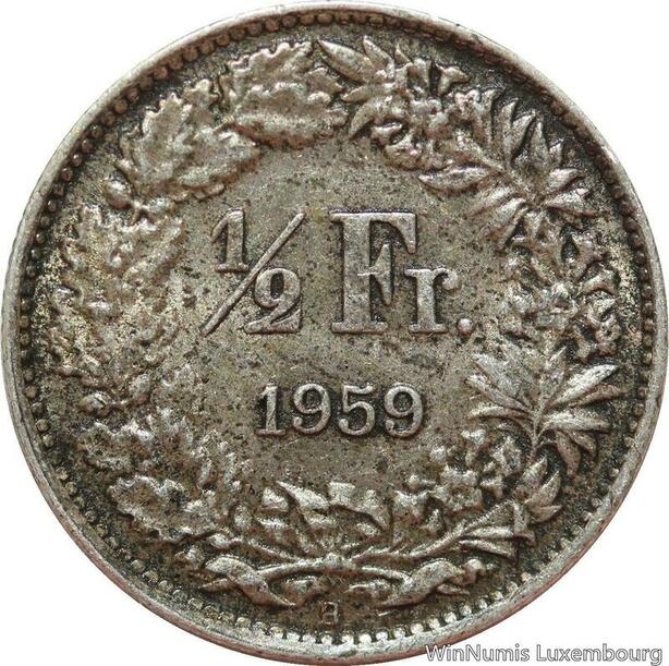 R7438 Switzerland 1/2 Franc Helvetia 1959 B Berne Silver -> Make offer