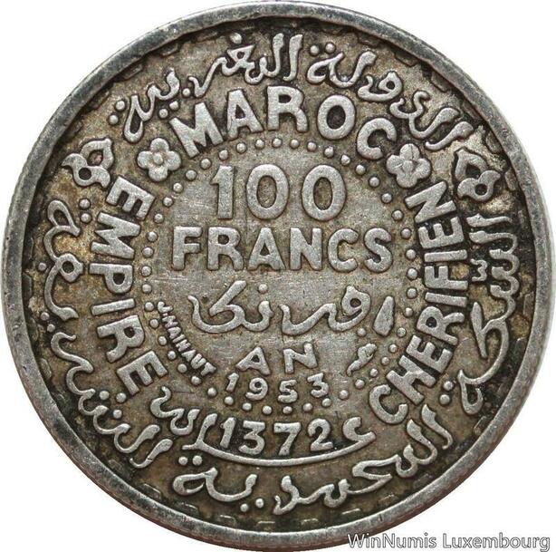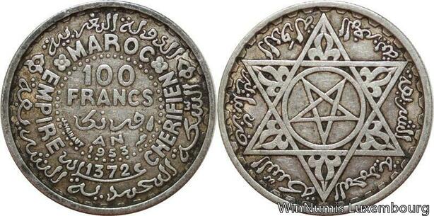 R7453 Morocco 100 Francs Mohammed V AH 1372 1953 A Paris Silver -> Make offer
