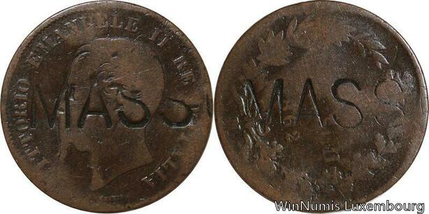 R7456 Italy 5 Centesimi Vittorio Emanuele II 1862 N Naples Countermark Massacre