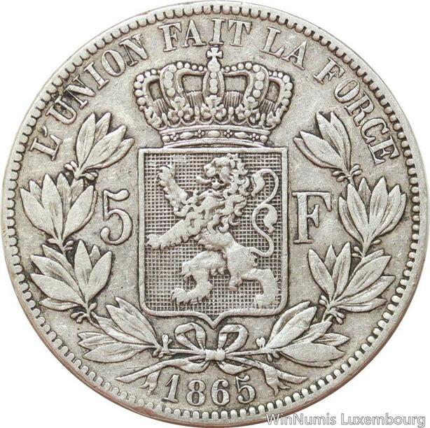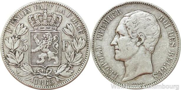 R7465 Belgium 5 Francs Leopold I 1865 Argent Silver -> Make offer