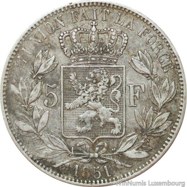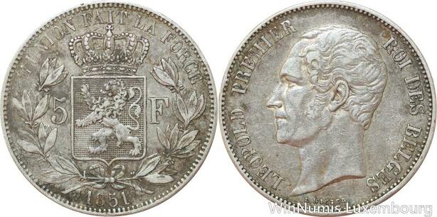R7467 Belgium 5 Francs Leopold I 1851 Argent Silver -> Make offer