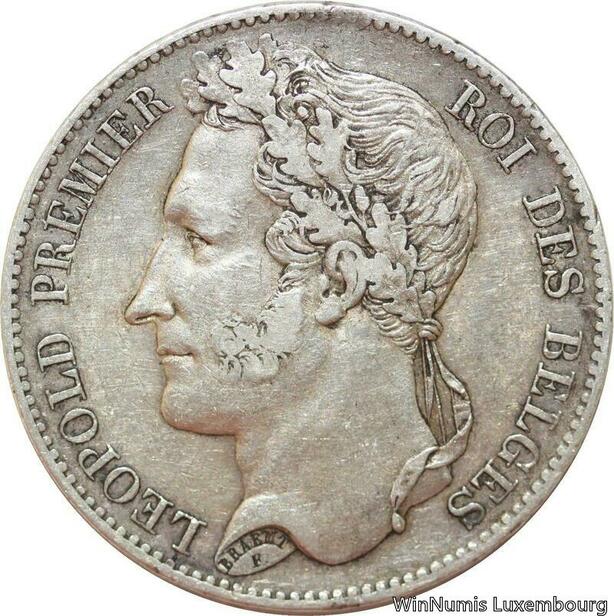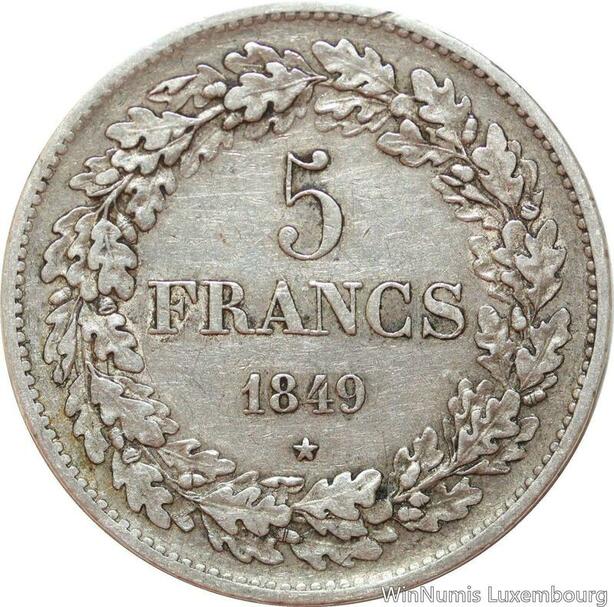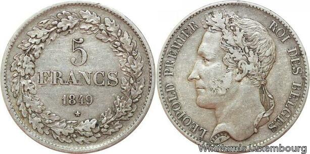 R7471 Belgium 5 Francs Leopold I 1849 Raised Letters Argent Silver -> Make offer