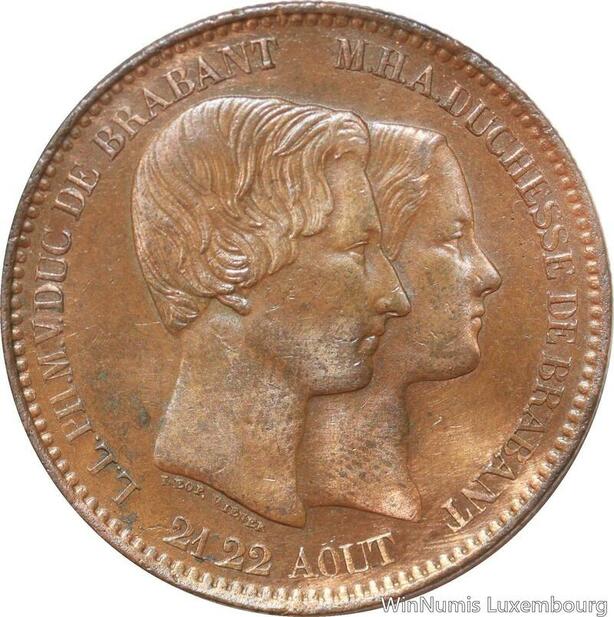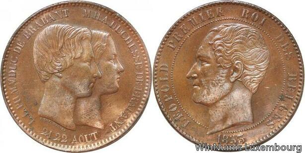R7481 Belgium 10 Centimes Leopold I Marriage Duke Dutchess Brabant 1853 AU