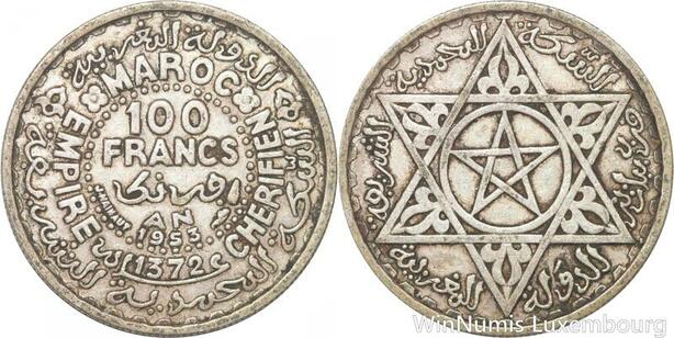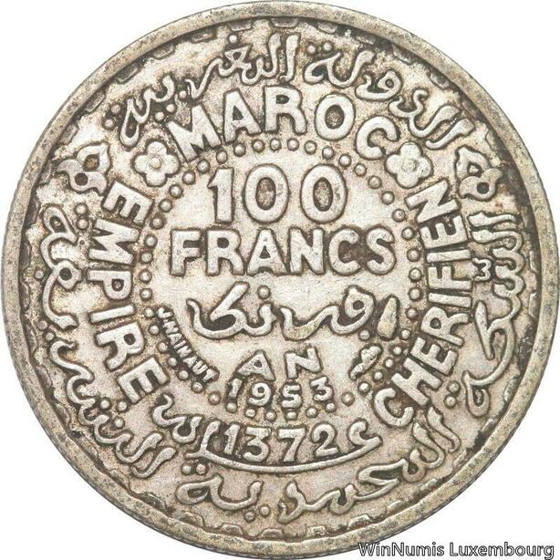 R7512 Morocco 100 Francs Mohammed V AH 1372 1953 Paris Silver -> Make offer
