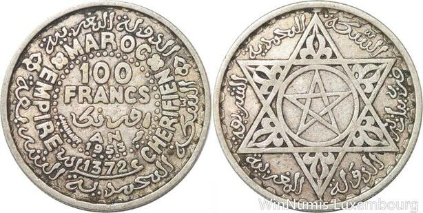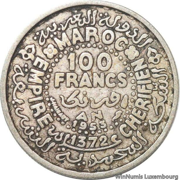 R7514 Morocco 100 Francs Mohammed V AH 1372 1953 Paris Silver -> Make offer