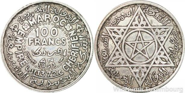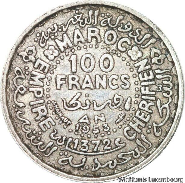 R7516 Morocco 100 Francs Mohammed V AH 1372 1953 Paris Silver -> Make offer