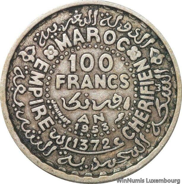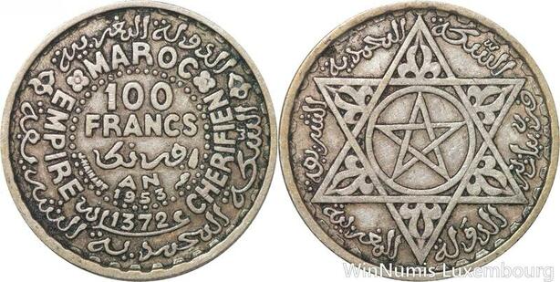 R7517 Morocco 100 Francs Mohammed V AH 1372 1953 Paris Silver -> Make offer