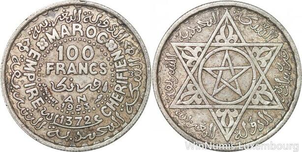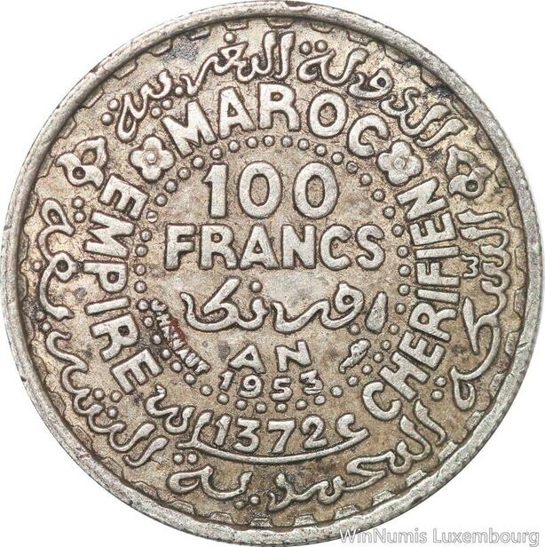 R7518 Morocco 100 Francs Mohammed V AH 1372 1953 Paris Silver -> Make offer