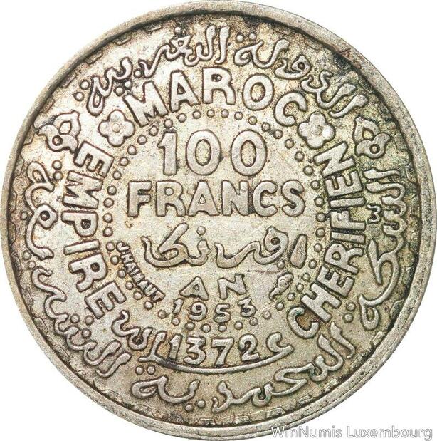 R7519 Morocco 100 Francs Mohammed V AH 1372 1953 Paris Silver -> Make offer