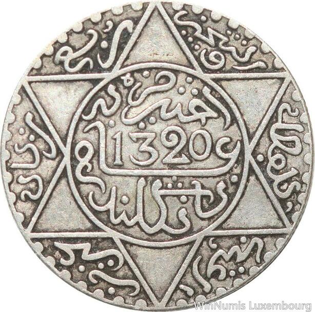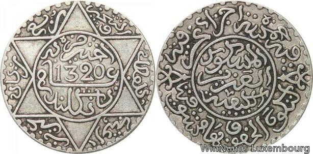 R7538 Morocco 2 1/2 Dirhams 1/4 Rial Abd al-Aziz AH 1320 1903 London Silver