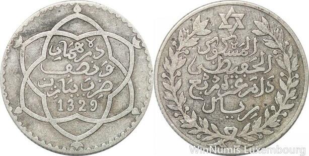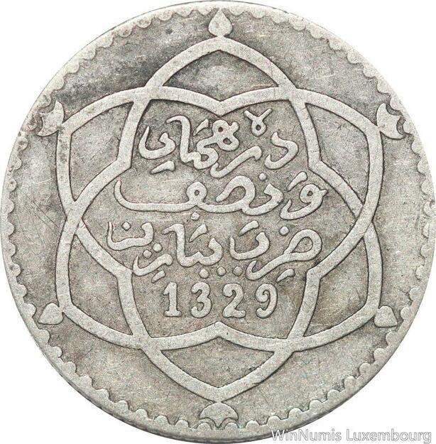 R7542 Morocco 2 1/2 Dirhams Abdelhafid AH 1329 1911 Paris Silver -> Make offer