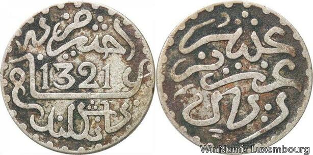R7550 Morocco 1 Dirham Abdelaziz AH 1321 1903 London Silver -> Make offer